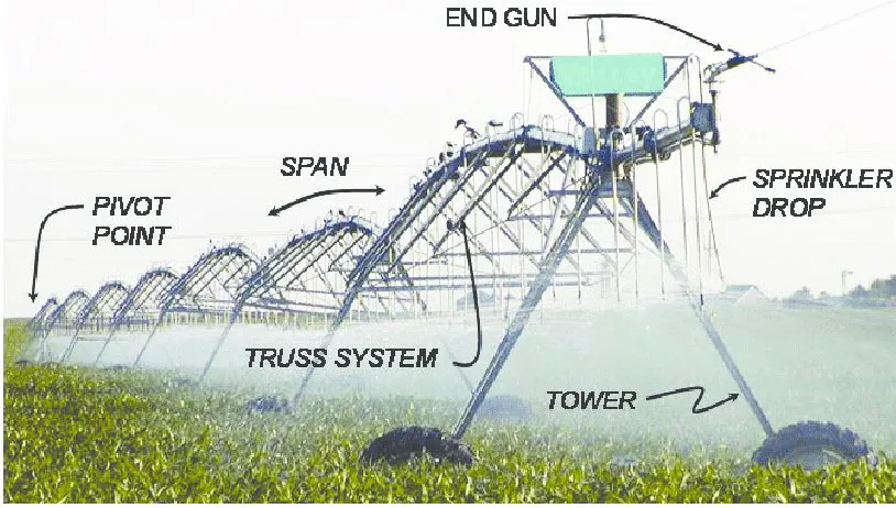 An irrigation system comprises a water source (river, reservoir, tank, underground aquifer) with or without a pump, and a distribution system comprising pipes, valves and nozzles. Optimum results require equal distribution. A farmer/producer can control how much water to supply and when to apply it, but the irrigation system determines the uniformity of distribution.